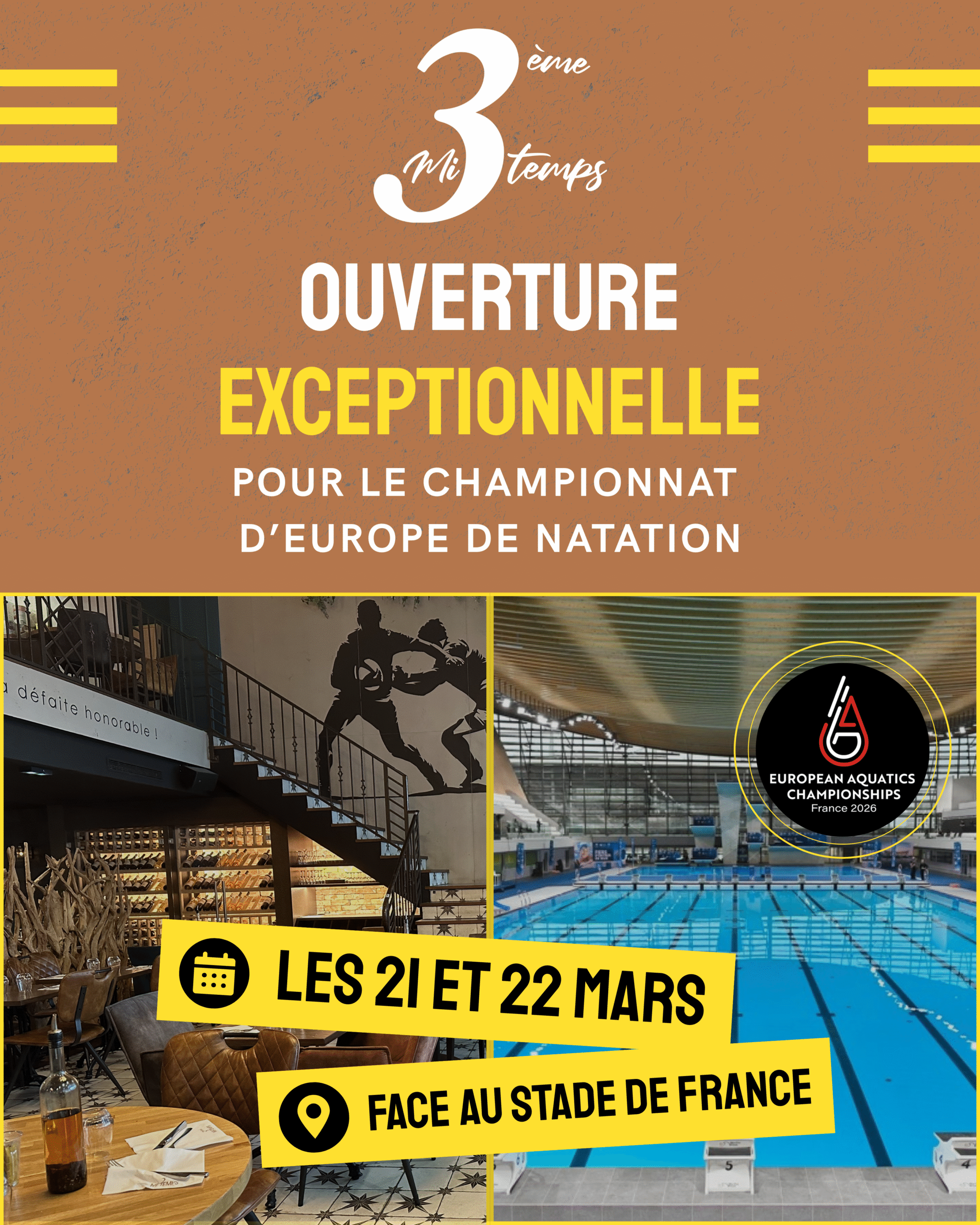 À l’occasion du Championnat d’Europe de natation, nous ouvrons exceptionnellement samedi 21 et dimanche 22 mars 💥